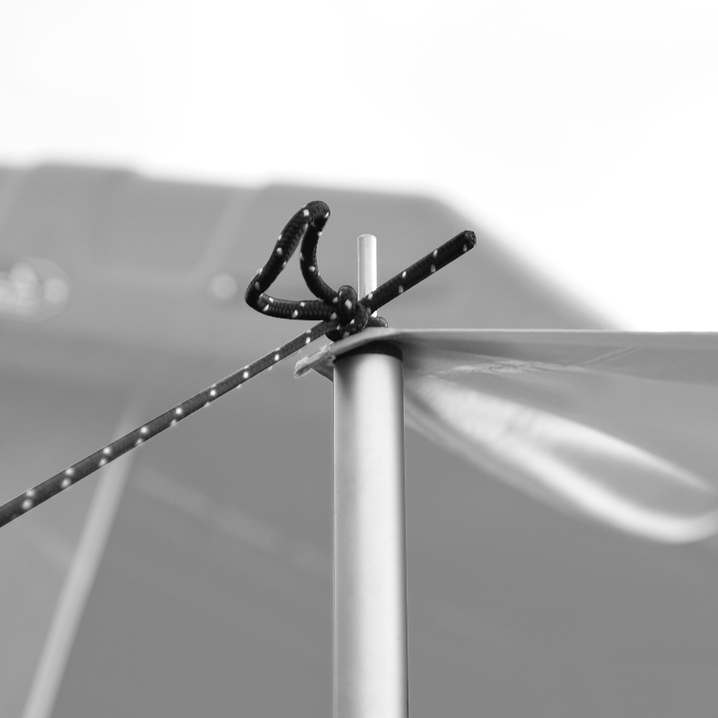 Le deuxième aspect technique est lié à la structure et à la stabilité mécanique. Les quatre poteaux télescopiques en aluminium facilitent l’ajustement de la hauteur et permettent d’adapter la forme de l’auvent selon l’implantation au sol et les besoins de ventilation. La présence d’ailes latérales améliore la zone abritée et offre des options de protection contre le vent ou la pluie oblique. Pour garantir la stabilité, il faut exploiter les points d’ancrage et les accessoires fournis : un montage soigné et une mise en tension correcte des sangles contribuent significativement à la tenue au vent. En terrain exposé, le recours à des ancrages supplémentaires et à un réglage bas peut être nécessaire pour limiter la prise au vent.