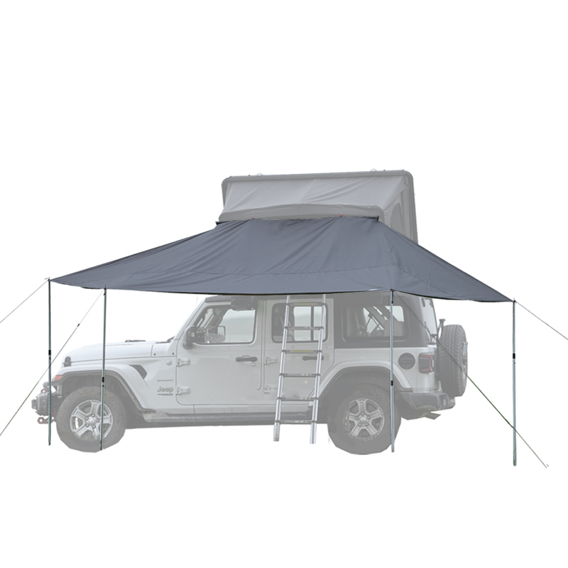 Auvent universel Wild Land en 210D Rip‑Stop avec revêtement argenté offrant une protection UPF50+ contre les UV et une bonne résistance à la pluie. Conçu pour se fixer aux tentes de toit Wild Land ou être utilisé séparément avec un véhicule, il crée rapidement une zone ombragée pour repas et détente en extérieur.
