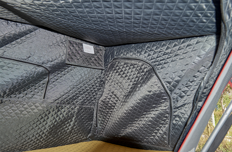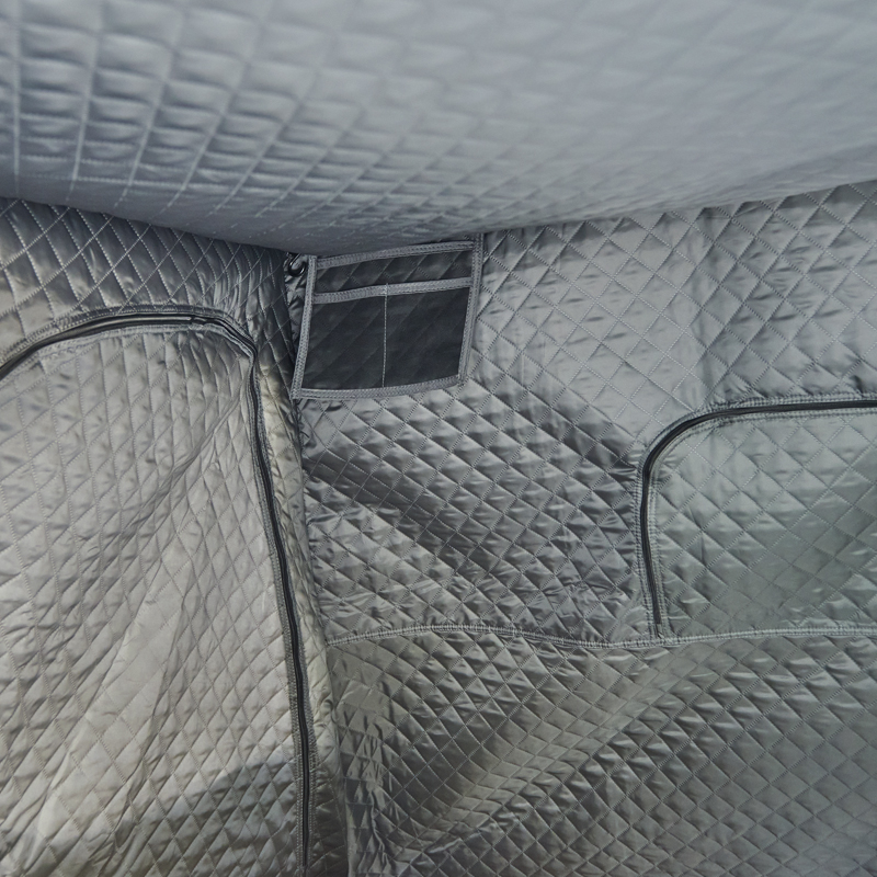 La doublure utilise un composite tri-couche qui combine l’extérieur et l’intérieur en tissu 190T et une couche interne isolante de 90 g. Ce choix place l’accent sur la durabilité mécanique et la longévité des performances isolantes. Les finitions incluent des points de fixation renforcés et des coutures adaptées pour résister aux manipulations fréquentes et au pliage. Le tissu 190T est reconnu pour son bon rapport résistance/poids : il tolère le frottement lors de l’installation et supporte le rangement compressé si tu respectes les recommandations d’entretien.