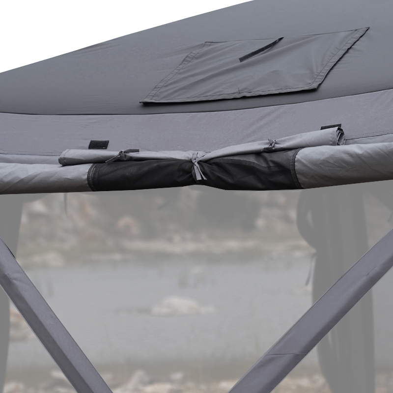 La toile est en 210D polyoxford avec enduction PU 800 mm, ce qui lui confère une résistance à l’eau adaptée aux averses et à une utilisation extérieure normale. Le double toit renforce la protection contre la pluie. En cas d’intempéries prolongées ou de fortes précipitations, il est conseillé de vérifier l’orientation du vent, d’assurer un bon drainage autour de l’abri et d’éviter l’accumulation d’eau sur la toile pour préserver l’intégrité du revêtement.