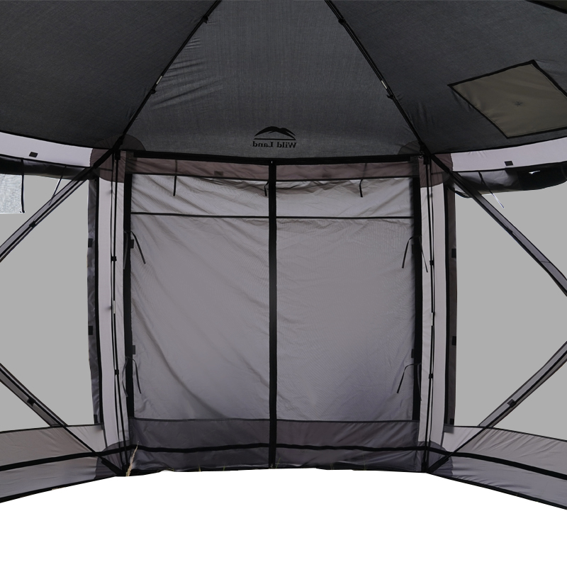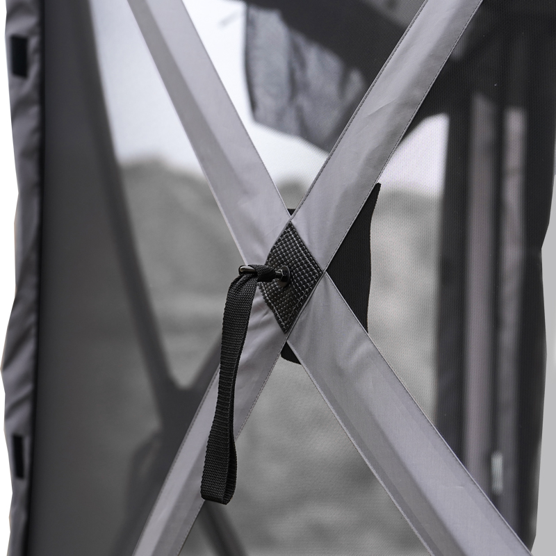 Sur le terrain, le Hub Screen House 600 Lux se distingue par la simplicité d’utilisation et l’espace qu’il propose. Le volume intérieur, avec ses parois en maille sur six côtés, crée un compromis confortable entre visibilité extérieure et protection insecte — tu peux profiter du paysage sans être dérangé. L’accès est facilité par une porte en T permettant une entrée et une sortie aisées, même lorsque plusieurs personnes utilisent l’abri simultanément. Pour des activités de jour comme de soirée, l’abri fournit un espace protégé idéal pour poser des tables de service, des installations de vente, des stands d’information ou un coin détente pour la famille.
