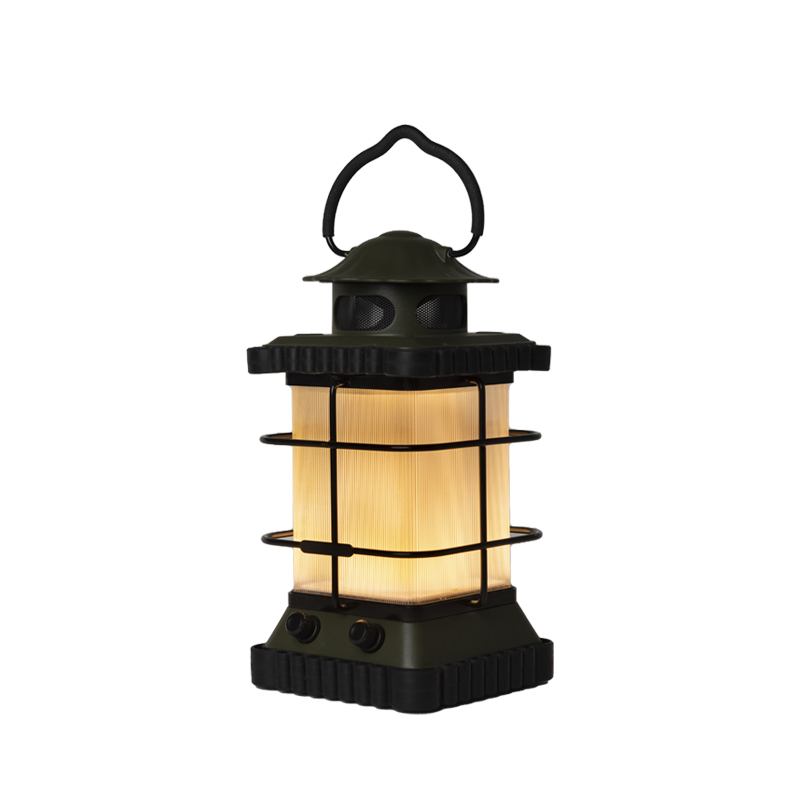 La partie audio repose sur un haut-parleur mono de 3 W (4 Ω) conçu pour délivrer un son à 360° autour de la lanterne. Le système audio privilégie la praticité : couplage Bluetooth simple et diffusion continue à partir de sources externes. Le châssis intègre des boutons séparés pour le contrôle du son et de l’éclairage, ce qui facilite l’utilisation en plein air sans nécessiter un accès complexe aux menus. Les matériaux — fer pour la structure, silicone pour la protection, PC/ABS/PP pour les composants — assurent un bon compromis entre robustesse, légèreté et protection contre les éléments. Avec un indice IPX4, la lanterne résiste aux éclaboussures et à la pluie légère, mais elle n’est pas conçue pour une immersion ou une exposition prolongée à l’eau.