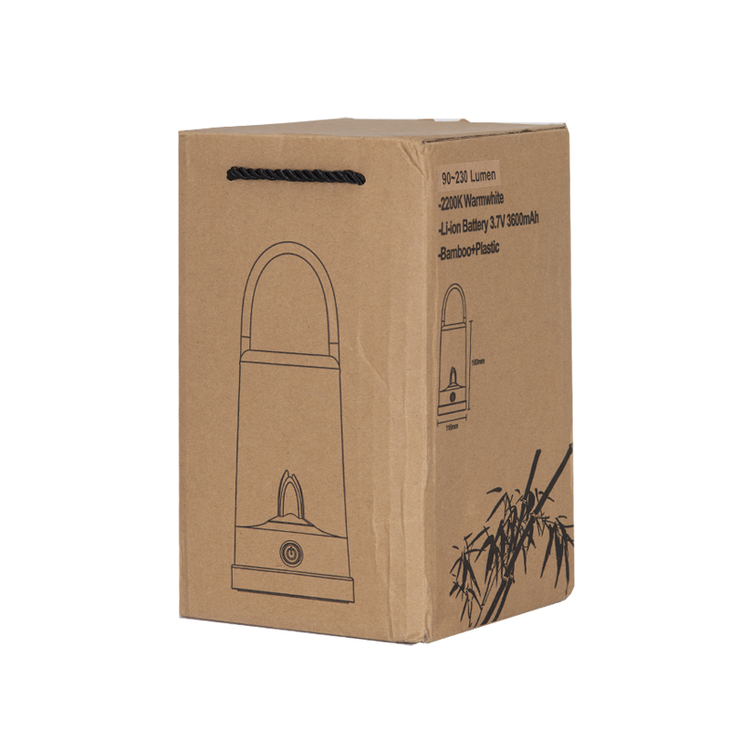 La coque combine un plastique translucide à haute transmission lumineuse pour le diffuseur, une base en bambou et une poignée en chanvre détachable pour la suspension et le transport. L’indice IPX4 atteste d’une résistance aux éclaboussures, ce qui permet une utilisation extérieure sous des conditions humides légères, mais pas en immersion. Les dimensions sont de 116 × 266 mm pour un poids d’environ 400 g incluant les batteries, ce qui en fait une lanterne compacte et facilement transportable.