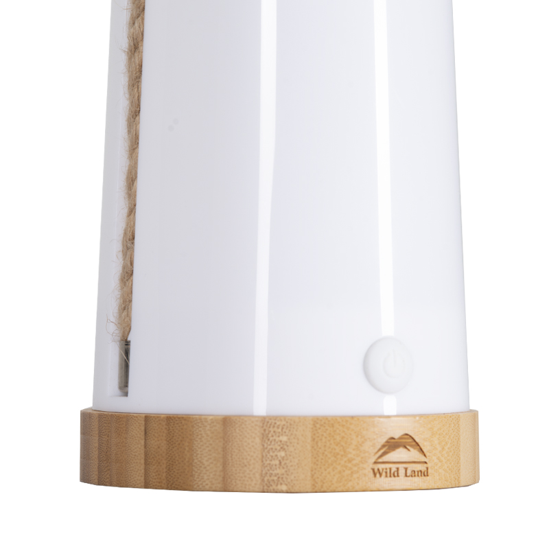 La lanterne est équipée d’une poignée en chanvre détachable conçue pour faciliter la suspension. Tu peux l’accrocher à une branche, un crochet ou un point d’ancrage dans ta tente. Vérifie régulièrement l’état de la poignée et des attaches si tu la suspendes fréquemment pour éviter tout risque de chute.