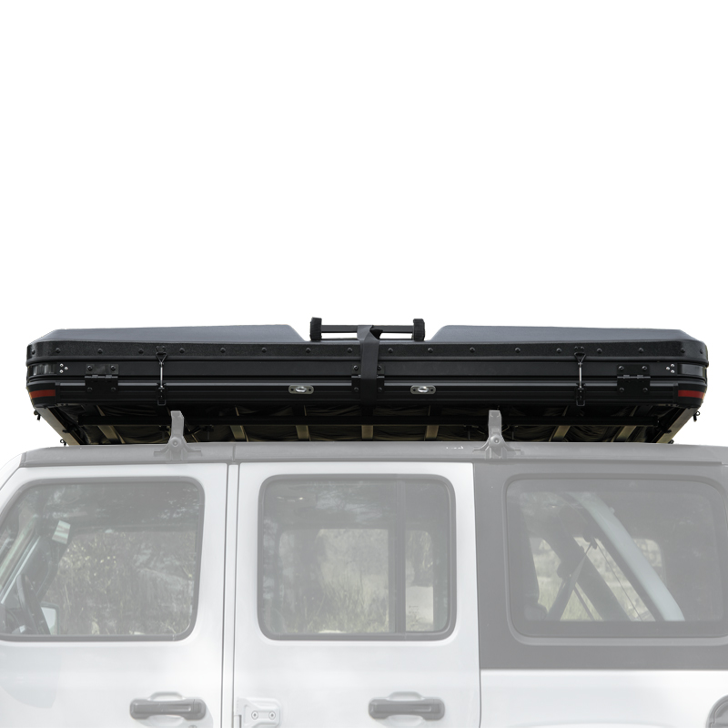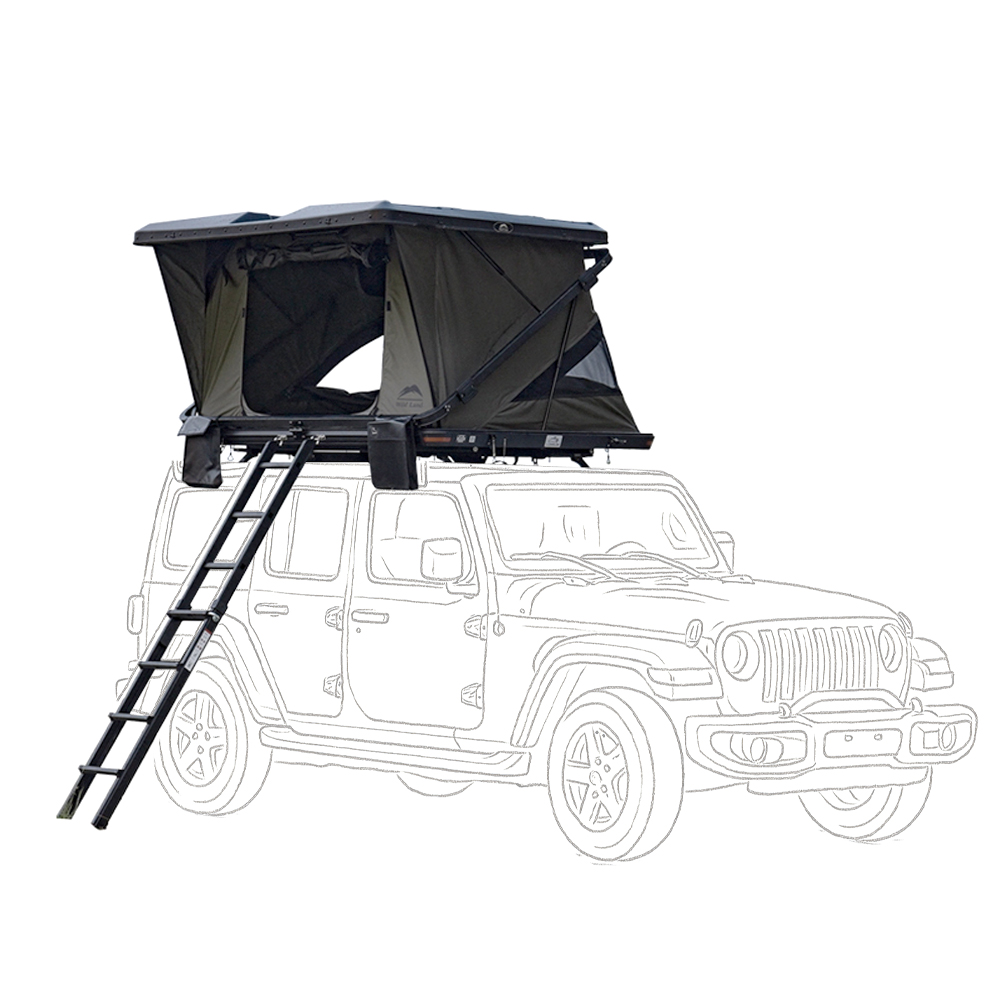 Rough Country Adventure Cruiser — Tente de toit rigide pour 4×4, ouverture automatique par mécanisme breveté Wild Land. Volume intérieur optimisé (design en Z), matelas épais intégré et échelle télescopique repliable. Idéale pour overland et bivouac rapide.