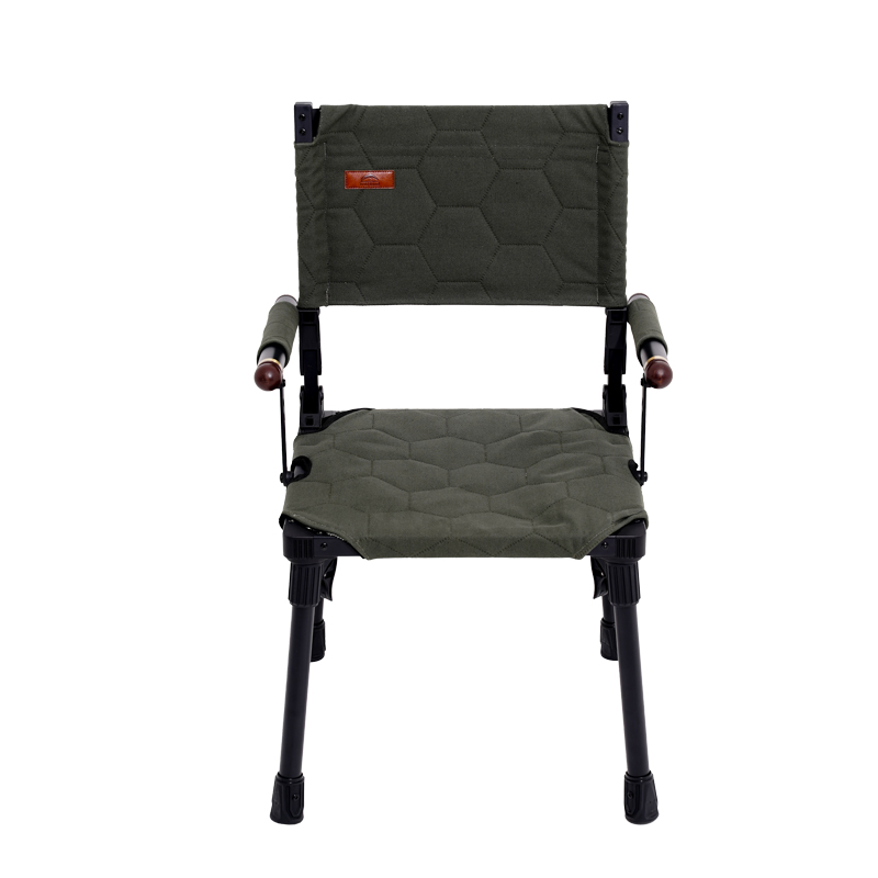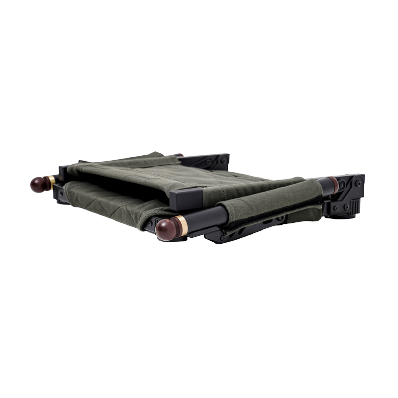 Le cadre est fabriqué en alliage d’aluminium, matériau fréquemment utilisé en équipement outdoor pour sa résistance à la corrosion et sa légèreté. Les jonctions utilisent du nylon, ce qui améliore la fluidité du mécanisme pliant et diminue l’usure par frottement métal-métal. L’assise est réalisée en toile isolante (durable insulated canvas) — un textile robuste qui apporte une isolation thermique appréciable, notamment lors d’utilisation sur des sols frais ou par temps frais. Certains éléments esthétiques ou renforts peuvent comporter des parties en bois selon les finitions, offrant un design chaleureux sans compromettre la fonctionnalité.